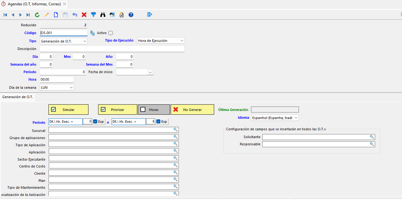 - Informe de Previsión de Mantenimiento (periódico y acumulativo);